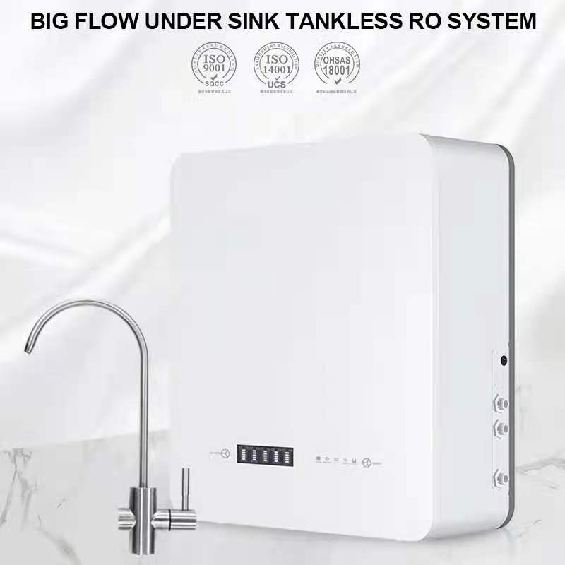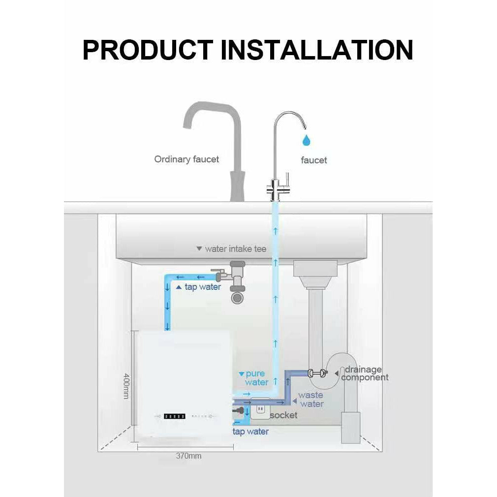Enjoy fresh, great tasting purify water right at home- perfect for drinking, cooking and making delicious coffee, tea and ice. This system is guaranteed to remove up to 99% of harmful water contaminants such as chlorine, taste, odor, VOCs, as well as toxic fluoride, arsenic, lead, nitrates, heavy metals and much more. This RO machine is designed without a storage water tank under sink in the kitchen.